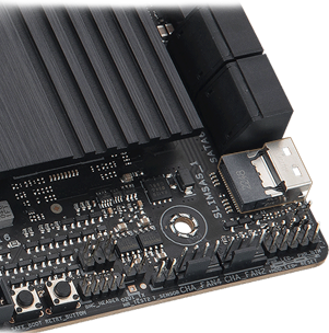 Een moederbord met SlimSAS-poort biedt de mogelijkheid om industriële SSD-drives, servers en netwerkapparatuur aan te sluiten.