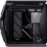 | Overige informatie | Advanced BTF-ontwerp Met de combinatie van een BTF-videokaart, moederbord en behuizing kun je genieten van een volledig verborgen connectorervaring. Deze Advanced BTF-aanpak wordt bereikt via het nieuwe graphics card high-power slot dat beschikbaar is op BTF-moederborden en tot 600 watt kan leveren aan BTF-videokaarten. Met een volledige set BTF-componenten kunnen bouwers zichtbare kabels wegwerken voor een extra opgeruimde esthetiek. Structuur en stijl Een luchtinlaat aan de voorkant kan voor voldoende ventilatie zorgen om precies de juiste temperatuurbalans te bereiken voor je systeem en videokaarten. Het is strak geïntegreerd in een gedurfde nieuwe look met kenmerken als de karakteristieke ruitvormige badge op de voorkant, gestempeld met het beroemde ROG-logo en omgeven door diagonale schuine strepen. Gebouwd voor hoge luchtstroom De Republic of Gamers wordt bevolkt door bouwers die het beste eisen, en de Hyperion GR701 BTF Edition levert een koelingpotentieel van de bovenste plank, met ondersteuning voor 420 mm radiatoren aan de bovenkant en de voorkant van de behuizing, terwijl vier 140 mm PWM-ventilatoren vooraf zijn aangesloten op een Aura Sync ARGB ventilatorhub. Voldoende kabelbeheer en routing Onder het moederbordladegebied vinden bouwers een 34 mm diepe ruimte voor hun kabelbeheerbehoeften, en een kabelgeleidingskanaal van 46 mm breed, beveiligd door diverse ROG-gemerkte klittenbanden om de boel netjes te houden vanwege het transparante zijpaneel. Deze behuizing biedt ook een doorschijnende kabelafdekking die lelijke bedrading kan verdoezelen en tegelijkertijd je RGB-stijl er doorheen laat schijnen. Ondersteuning voor grote videokaarten In deze zeer adaptieve behuizing passen videokaarten tot 460 mm lang en 130 mm dik, zowel horizontaal als verticaal. Dus of je nu een ROG Strix RTX 4090 of een andere kaart van vergelijkbare grootte wil gebruiken, je zult genoeg ruimte hebben om mee te werken. Ingebouwde videokaarthouder De ROG Hyperion GR701 BTF Edition is voorzien van een zeer verfijnde geïntegreerde videokaarthouder, waarvan de lichte geanodiseerde aluminium onderdelen verticaal of horizontaal kunnen worden gebruikt om lange videokaarten niet te laten doorbuigen, en hij biedt extra compatibiliteit met de ROG Herculx kaarthouder. Ventilator en ARGB-hub Geen ROG-behuizing is tegenwoordig compleet zonder een ingebouwde hub om ventilatoren en ARGB-verlichting te regelen. Deze is versierd met een gouden ROG-logo, en ondersteunt tot acht ARGB-componenten en zes PWM-ventilatoren, zodat gebruikers hun eigen verlichting en koeling kunnen toevoegen naast het verlichtingsbord en de vier reeds bevestigde behuizingventilatoren. Lichtpaneel met ROG-thema Deze behuizing heeft een intern ARGB-verlichtingspaneel dat de ROG-identiteit communiceert aan iedereen die naar binnen staart, en kan aan de buitenkant worden weergegeven als bouwers op die plek ruimte willen maken voor ventilatoren of SSD's. | ||