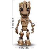 | Kenmerken | - Je kan dit LEGO Marvel I am Groot bouw- en speelmodel gemakkelijk allerlei poses geven - Kinderen bouwen hun eigen baby Groot uit Guardians of the Galaxy Vol. 2 van Marvel Studios. De set bevat ook een speelgoedcassette en een naamplaatje - Je kunt het bouwbare model eenvoudig verstellen en er zit zelfs een speelgoedcassette bij waarop baby Groot zogenaamd kan swingen - Een bijzonder cadeau voor een verjaardag of een andere gelegenheid voor kinderen vanaf 10 jaar die fan zijn van de Guardians of the Galaxy films van Marvel Studios en de superschattige baby Groot - Het in allerlei standen verstelbare model is ca. 26 cm hoog en wordt geleverd met een cassettebandje en een naamplaatje | ||