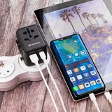 | naar | 1x USB-A (vrouwelijk), 1x USB-C (vrouwelijk), Type A (VS, Canada, Mexico & Japan), Type B (VS, Canada, Mexico & Japan), Type C (Europa, Zuid-Amerika & Azië), Type E (Frankrijk, België, Polen, Slowakije & Tsjechië), Type F (Europa & Rusland), Type G (VK, Ierland, Malta, Maleisië & Singapore), Type I (Australië, Nieuw-Zeeland, China & Argentinië), Type J (Zwitserland, Liechtenstein & Rwanda), Type L (Italië & Chili), Type N (Brazilië) | ||